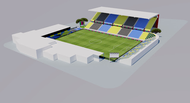 +xThe render is a fun brainstorm but totally unrealistic. Nobody is going to sit in a seat at one goal end with multiple thick concrete pylons obstructing their view. Terrace up to them farken and besser block the back to bring da noize