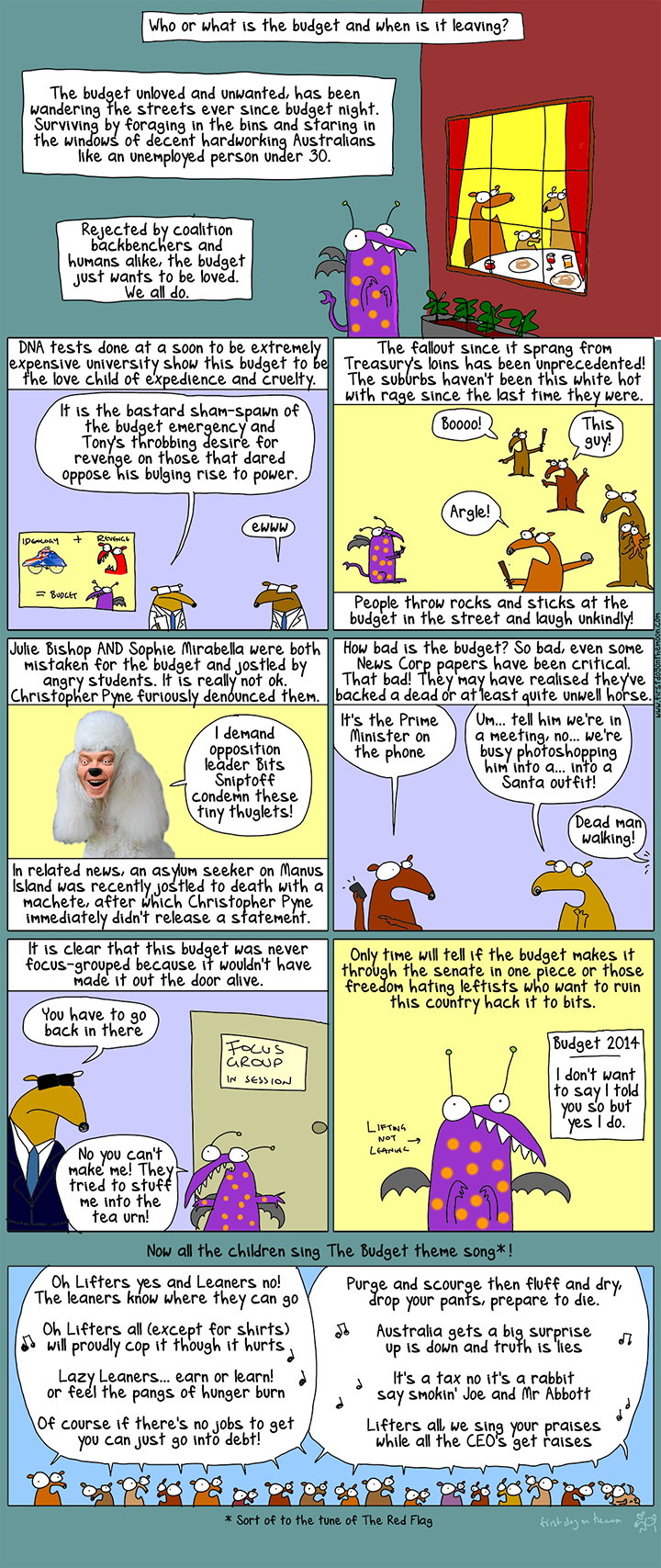 @Thuper. There's no doubt something has to be done, the argument is primarily how it's getting done. People are feeling a little gypped particularly because the "heavy lifting" is supposed to be done by all when clearly it isn't. http://www.smh.com.au/federal-politics/political-news/poorest-families-pay-most-in-budget-20140521-38p5m.html
