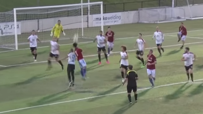 Actually having a look at the footage, i dont see anything wrong with United's three goals? 1. Payne's header hit Rockdale's defenders hand then went in. 2. Mileski was clearly brought down, shirt pulled, player should of seen red as he was last man, not yellow 3. Payne never touched the ball, but you could argue he may of interfered with the GK's vision / position. if anything, why did Rockdale get a penalty? very soft indeed.