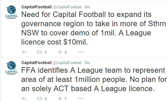 Gyfox wrote:The name of the administrative region and the name of the club don't have to be the same. Newcastle Jets represents the whole region that is administered by Football Northern NSW. An advantage of Capital Football looking after Southern NSW like happens with Rugby Union is that the number of registered players within the region would increase by around 50%. Currently there are 16.5k registered players in the ACT competitions and another 8.5k in the District Associations in Southern NSW. Bringing them under 1 administration would provide development pathways from the entire region to a future A-League team in the closest major city. tbitm wrote:Gyfox wrote:tbitm wrote:Agree. It would be great if Capital football and Southern Branch FNSW had a merger I wouldn't include South Coast, Shoalhaven or Southern Highlands in the merger but the rest of Southern Branch and the inland associations west of the ACT should merge in to one region. Well either that or a rep team in NPLNSW. Get the whole community behind one team at a higher standard. Edited by tbitm: 12/8/2015 11:07:38 PM Indeed, what Gyfox says. There's some 'currency' too, or 'Zing', I guess, in utilising 'Canberra' and even the name 'Capital Football'? The same that comes when naming after a town, rather than a vaguer region - there are exceptions to that, but being from 'Canberra Town' and 'The Capital' (Please don't mistake me, please no WNBL-like 'Canberra Capitals' name! :o :p) that has some greater weight and possibly traction in drawing that local and regional support. And interestingly, perhaps even with those wider surrounds as you guys suggest. If we talk in-terms of Canberra as a service area too - many regional folks from surrounding areas would travel to Canberra for a number of services that only a city of half a million would provide, especially if Sydney is a bit further or not necessary, for that service. Also, no reason why both Canberra/ACT+Surrounds region AND South Coast region can't support future A-League franchises. It may make for a congested, more NSW-centric A-League, but that could be balanced with a couple more Queensland teams and possibly a Geelong team. And tbh, that's where the people are and too, the strong football markets (Heartlands)! Edited by GloryPerth: 13/8/2015 02:47:07 AM