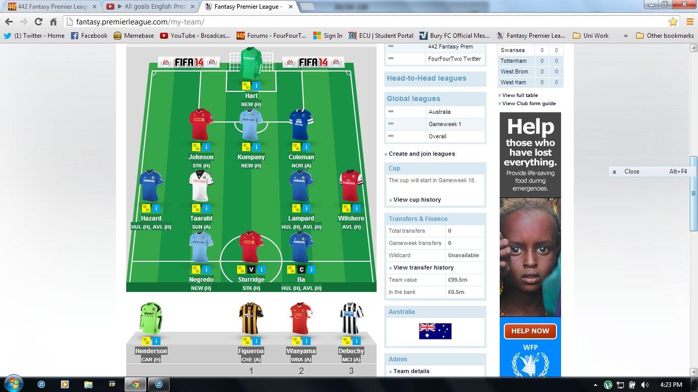 I made two transfers (copping the 4pts) to bring in Barkley (didn't play) and Walcott (off the bench last few minutes but at least got an assist) but given Lalana and Townsend (who I replaced - I had cash in the bank) did very little I kind of got away with it... assuming Theo starts some matches from here on...
