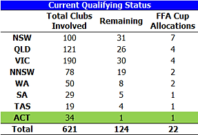 Time for another update. The focus has been on A-League Finals, ACL games, and lead up to the World Cup. But in the background the FFA Cup qualifying games have continued, and from the original 631 clubs involved (including A-League clubs) there are now just 62 who can still win it: