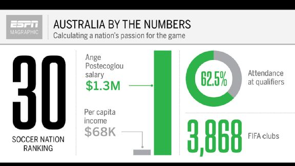 After a 6-0 thumping by France in a friendly, Australia brought in Postecoglou, who has only domestic experience. That's a huge gamble. They will have a few friendlies with him at the helm before they get to Brazil, but I don't think it will be enough for Australia to really find any kind of footing.