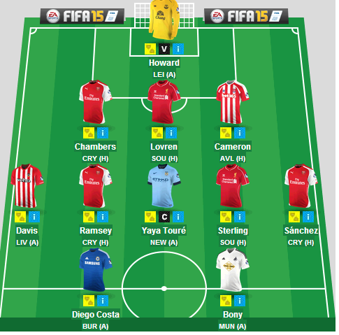 RedKat wrote:Do I play Chambers (will he play) Nailed on to start this weekend, that's why pretty much all the Gooners here seem to have selected him :lol: Mixed it up again :lol: ---------------------Begovic------------------- ----Cameron---Chambers---Lovren----- Rambo--Henderson--Sterling--Hazard --------D. Costa---Giroud---Lukaku------ And yes I realise Lukaku might not make this weekend. @ Afro, I actually tipped Diego Costa as flop of the year in the predictions thread in WF, the sort of prediction I'm usually emphatically wrong about hence selection in my fantasy team.