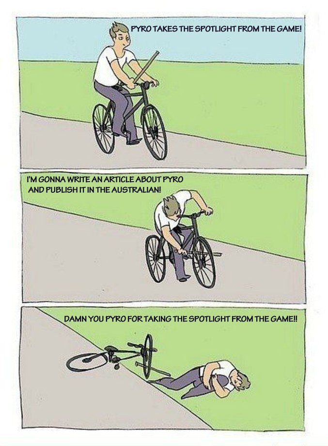 They're grown men, for God's sake... When do they grow up...or have they decided that A-League is where they all collectively exercise their inner fuckwit?