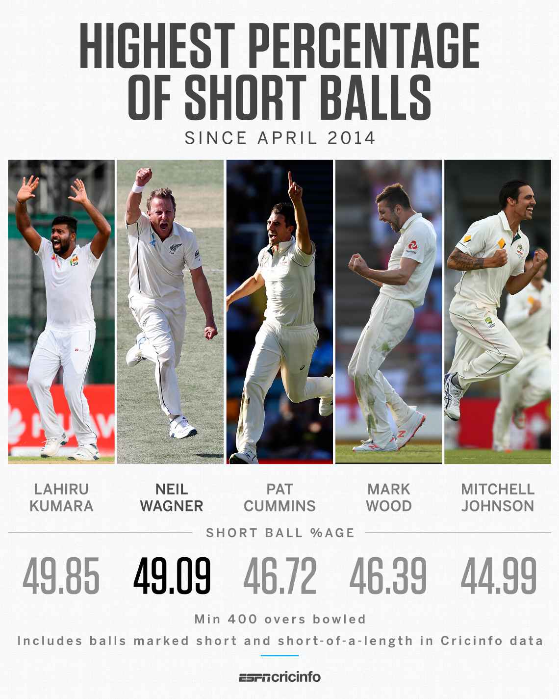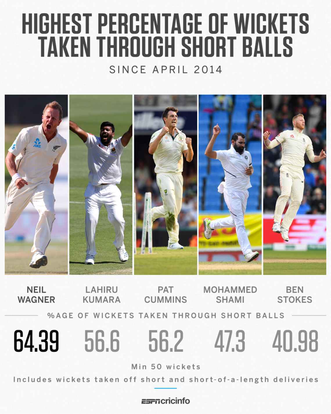 >>> Where Wagner gets off is the height. He isn't bowling at the head or over the head. He is actually just bowling mostly at a back of length that Patty Cummins often bowls. He just does noticably more than Patty, with a very obvious field. A very very obvious field. If the umpires are allowing it to take place, they must think it isn’t too bad or too dangerous. it seems as though the majority of Wagner’s short balls are directed at the hips and chest area, not the head. Its not deemed dangerous when Cummins, Rabada, Nortje, Olivier (especially - he is a 150km/h bowler), MMorkel, M Johnson were doing it. So nothing will change now. Where Wagner excels especially, then Cummins, is the accuracy to not go over the head. I mean once Olivier, who is a brute of a bowler, sadly lost to test cricket, once he sends down two short ones, that are called, he has to stop and start pitching up. But he doesn't want too typically. He loves the middle of the pitch as much as Wagner. And with his extra pace, has the much superior strike rate. Cummins has flown under the radar, as against say Wagner, or Kumara, or Olivier especially. But here are some cricinfo stats before this current series:   Duane Olivier misses the cut off by 2 wickets. He got 48 in ten tests at 19 SR just 30 before retirement at just 26. Took the money of English county cricket. :( https://www.espncricinfo.com/story/_/id/28175486/how-neil-wagner-wanged-way-tophttp://www.espncricinfo.com/southafrica/content/player/486679.html <<< Olivier - in case anyone is interested. He could have broken strike rate records and all sorts had SA be able to its cricketers better wages.
