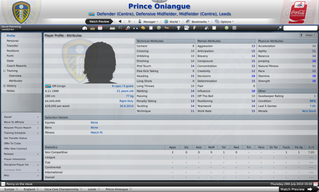 It's all looking good. I'm also currently in talks with a Bolivian forward whom I think would replace Ishiaku on the right hand side of my formation as the Nigerian is 33 now and a shadow of the player he was 2 years ago. Also looking at more defenders particularly in the centre and an a new left winger. (Carney has lost all his pace and at 32 it's not surprising).