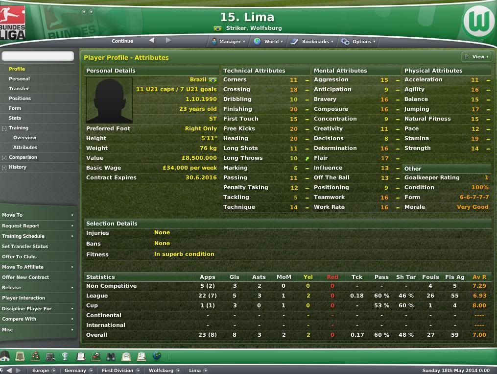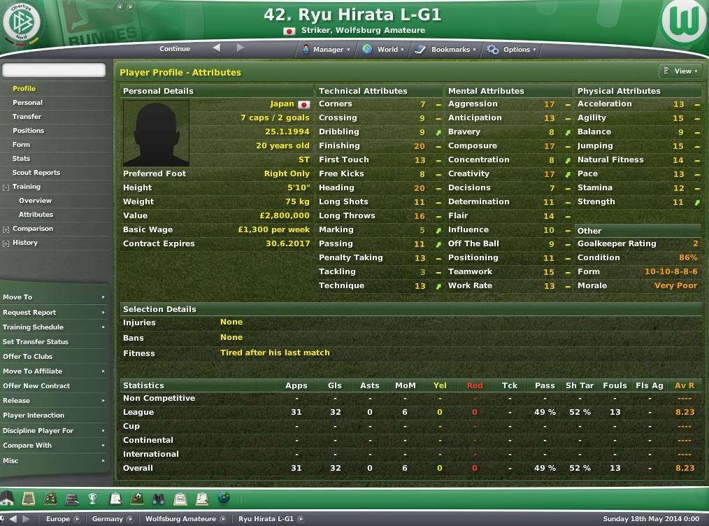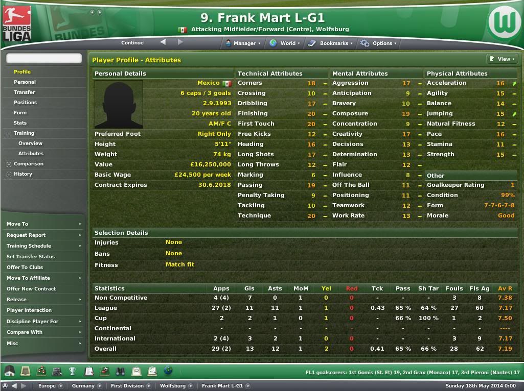 StarvinMarvin wrote:scouse_roar wrote:How do you guys edit the database? I haven't been able to figure it out. Just use the pre-game editor. Which can be found at: C:> Sports Interactive> FM2010> Tools> Editor Or you can use a program called FMRTE, this is diffrent to the pre-game editor as you can edit data whilst in the game. <---- Be careful with that one though it can be fairly buggy and can corrupt saved games. There should be an editor link in the start menu. Anyway, preparing for my new comp, I've been going through my shit and backing up stuff I needed. I found a bunch of old FM screenshots from ages ago: These 3 were probably the most devastating strike force I ever assembled in any FM game (or at least, without having started at like United or whatever).    Those 3 tore teams apart for Wolfsburg. England being oh so predictable.  This was my highest ever off until Juventus offered me 60 million for Valon Behrami in another game.  What a way to win the title \:d/