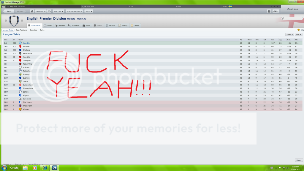 scouse_roar wrote:Love the later stages of leagues in FM. Derby Survive! Chelsea 13th! :D Chelsea had a shocker, Dennis Wise was in charge. Man U were headed the same way three seasons back. They had a board takeover in October and since then have spent almost 300m to get back to second. Everton have been the same, spent nearly 150m since their takeover 2 years ago but they keep signing crap.