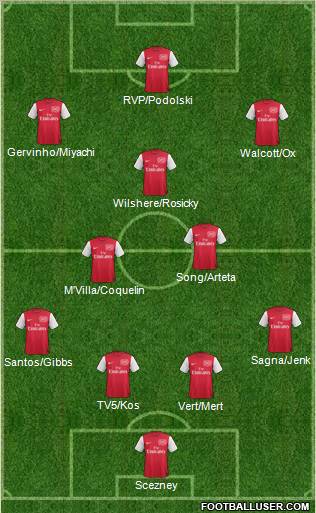 Szczesny > Friedel Sagna > Walker Vermaelen/Koscielny > Kaboul/Dawson/King/Gallas Assou-Ekotto > Gibbs Parker > Song Modric > Arteta Rosicky > VDV Walcott > Lennon Bale > The Ox Robin > Adebayor