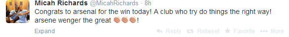 'Gratz to Arsenal Well deserved. Had to chuckle when you were 2 down though, however I always felt you'd get back into it.